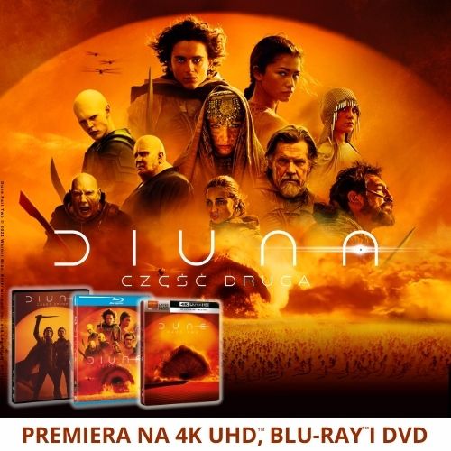 Nowość 4K UHD™, Blu-ray™ i DVD – film Diuna: Część druga już od 25 maja dostępna jest na płytach również w kolekcjonerskich, limitowanych wydaniach Blu-ray™ Steelbook i 4K UHD™ Steelbook, a także w specjalnych wydaniach Blu-ray™ i DVD zawierających dwa filmy z serii Diuna. Do tego wersja blu-ray zawiera świetne dodatki, które będą gratką dla fana filmu!