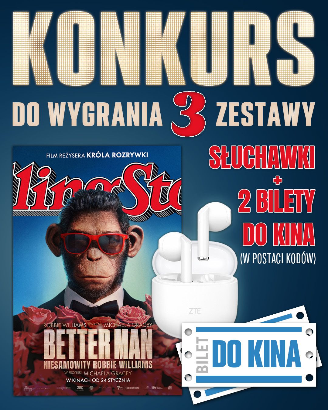 W kinach można już obejrzeć film Better Man. Niesamowity Robbie Williams. Z tej okazji przygotowaliśmy specjalny konkurs z bardzo atrakcyjnymi nagrodami!
