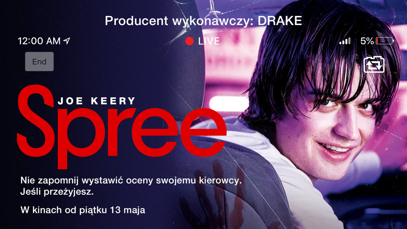 Spreeto drapieżna, wyprodukowana między innymi przez Drake’a i rozgrywająca się w całości na ekranach smartfonów i kamerek GoPro satyra na social media. Czarny humor i groteska mieszają się tu ze społeczną refleksją, a wydarzenia szybko nabierają niespodziewanego tempa. Całość opowiadana jest w intrygujący formalnie sposób znakomicie przystający do poetyki współczesnego internetu, dzięki czemu Spreewygląda jak jedyna w swoim rodzaju ekranizacja GTAdoprawiona nawiązaniami do American Psycho. Wiemy, że nie powinniśmy oglądać, ale nie możemy oderwać wzroku.
