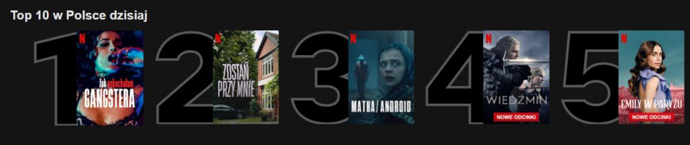 Oddzielnie rankingi filmów i seriali prezentują się następująco: