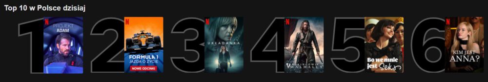 W dzisiejszym zestawieniu produkcja o Formule 1 ustępuje miejsca Projektowi Adam. Wikingowie: Valhalla spadło z czołówki.