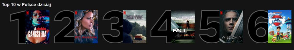 Oddzielnie rankingi filmów i seriali prezentują się następująco: