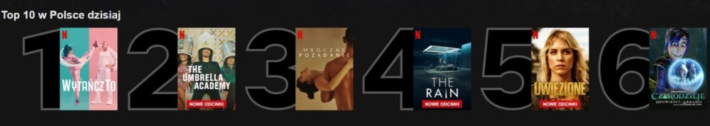 Oddzielnie rankingi filmów i seriali prezentują się następująco: