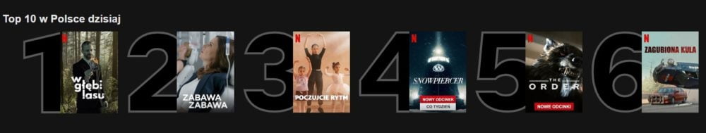 Serial The Order – który miał niedawno premierę 2. sezonu – powolutku wchodzi na kolejne szczeble listy. Teraz znajduje się na piątej pozycji. Tymczasem W głębi lasu oraz Zabawa zabawa zgodnie przewodzą liście.