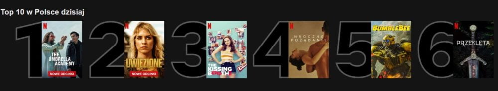 W kolejny dzień na liście Netfliksa dalej dominuje The Umbrella Academy, tuż za nią zaś dotrzymują jej kroku Uwięzione oraz The Kissing Booth 2. Bumblebee spada na piąte miejsce.