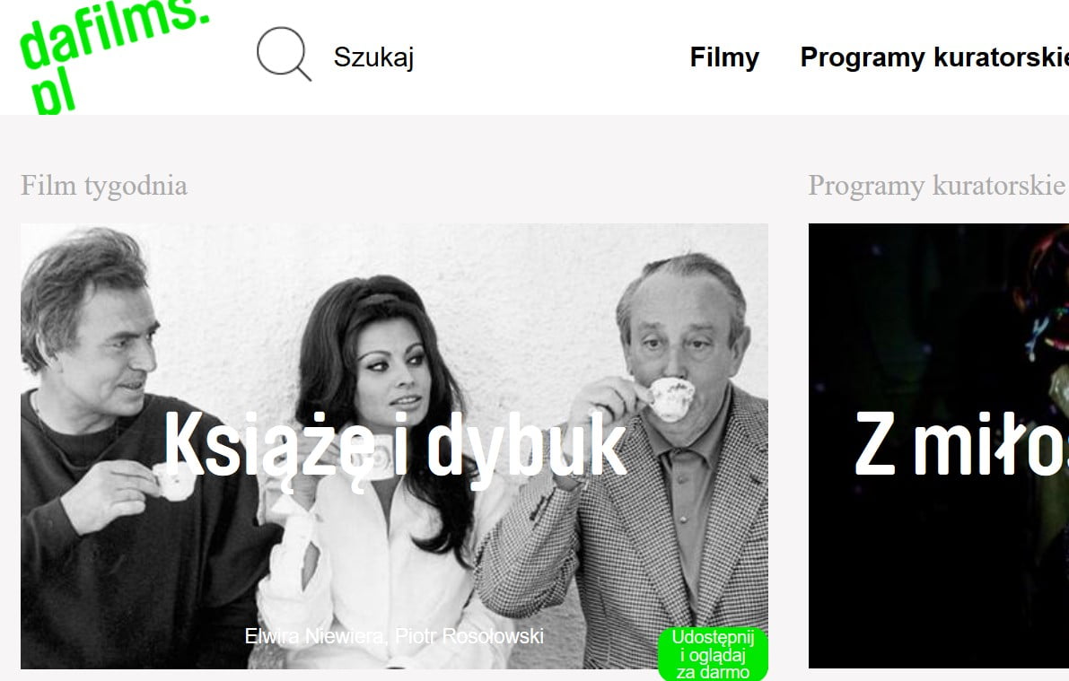 Filmem tygodnia jest polski dokument „Książę i Dybuk” (2017, reż. Elwira Niewiera, Piotr Rosołowski), porywającą podróż śladami reżysera Michała Waszyńskiego, nagrodzoną m.in. na Festiwalu w Wenecji w konkursie „Venezia Classici” oraz przez Polską Akademię Filmową statuetką Orła dla najlepszego dokumentu. W poszukiwaniu filmowych odkryć zajrzeć można do zakładki kolekcja czeskich filmów, w której przygotowano m.in. dokumenty szerzej nieznanych w Polsce twórców Karela Vachka czy Jany Ševčíkovej.