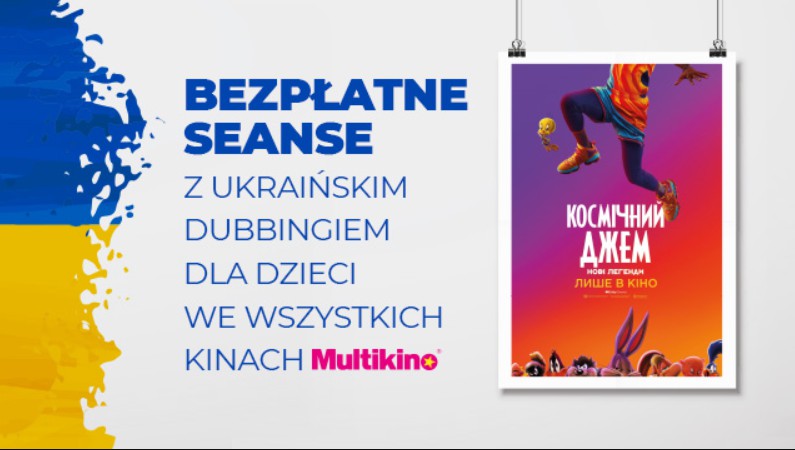 W ostatnich dniach do Polski uciekło kilkaset tysięcy uchodźców. Wśród nich są też dzieci. Wychodząc naprzeciw potrzebom coraz liczniejszej grupy osób z Ukrainy sieci kin Multikino i Cinema3D przygotowały seanse filmowe z ukraińskim dubbingiem. Będą one bezpłatne dla uchodźców z Ukrainy oraz ich opiekunów. Pierwszy film, który będzie można oglądać 12 i 13 marca, to „Kosmiczny mecz: Nowa era”. Wyświetlenie wersji z dubbingiem ukraińskim możliwe jest dzięki pomocy Warner Bros Polska. W kolejne weekendy na widzów z Ukrainy będą czekały inne filmy.