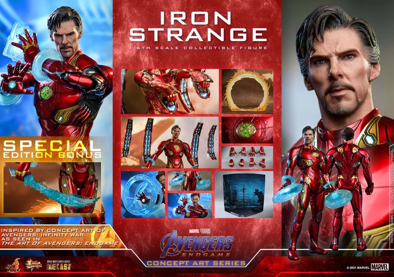 Hot Toys właśnie zaprezentowało nową figurkę Doktora Strange’a! Nie jest to jednak byle jaka figurka, gdyż jest ona inspirowana grafikami koncepcyjnymi z filmu Avengers: Wojna bez granic! Jak możecie pamiętać, jakiś czas temu do sieci trafiły grafiki, jak i rzeczywiste zdjęcia z planu, gdzie zauważyć mogliśmy małą podmiankę kostiumów Doktora Strange’a oraz Iron Mana. Niestety nigdy nie mieliśmy szansy zobaczyć wspomnianej sceny, ale za to Hot Toys przygotowało coś równie ciekawego. Mianowicie jest to Doktor Strange w lekko zmodyfikowanej zbroi Iron Mana jako figurka kolekcjonerska!