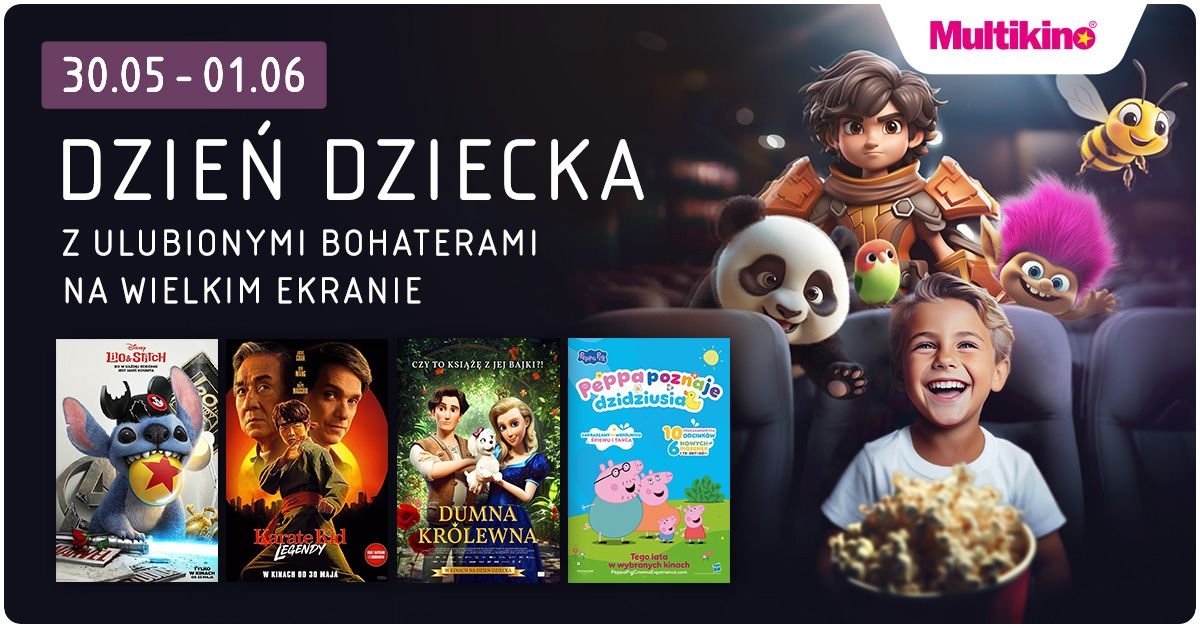 W kinach sieci Multikino każde dziecko decyduje czy chce świętować ze Stitchem, Świnką Peppą, Królewną czy wybiera Karate Kid! W repertuarze kin sieci Multikino od 30 maja do 1 czerwca czekają wyjątkowe premiery filmowe. Ponadto kibicujące rodziny mogę również wspólnie świętować podczas finałowego meczu Ligi Mistrzów UEFA. Bilety są dostępne w kasach kin sieci Multikino, na www.multikino.pl oraz w aplikacji mobilnej.