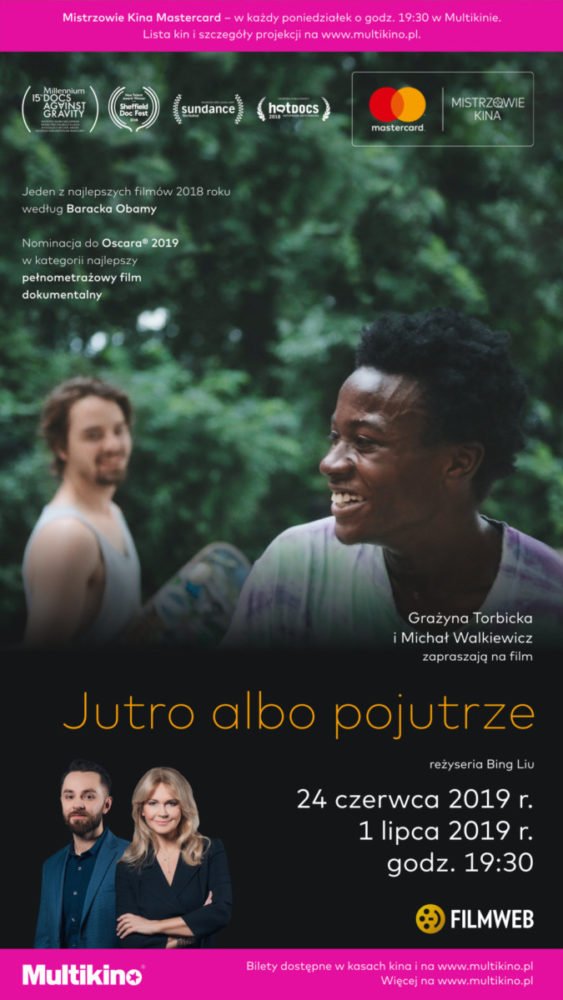 Na film „Jutro albo pojutrze” w ramach cyklu „Mistrzowie Kina Mastercard” zapraszamy już w 24 czerwca i 1 lipca o godzinie 19:30 do kin sieci Multikino w: Warszawie (kina na Targówku i Ursynowie), Poznaniu (Multikino Malta), Gdańsku, Sopocie, Szczecinie, Wrocławiu, Rzeszowie, Olsztynie, Pruszkowie, Łodzi, Lublinie, Krakowie, Katowicach, Bydgoszczy i Kielcach.