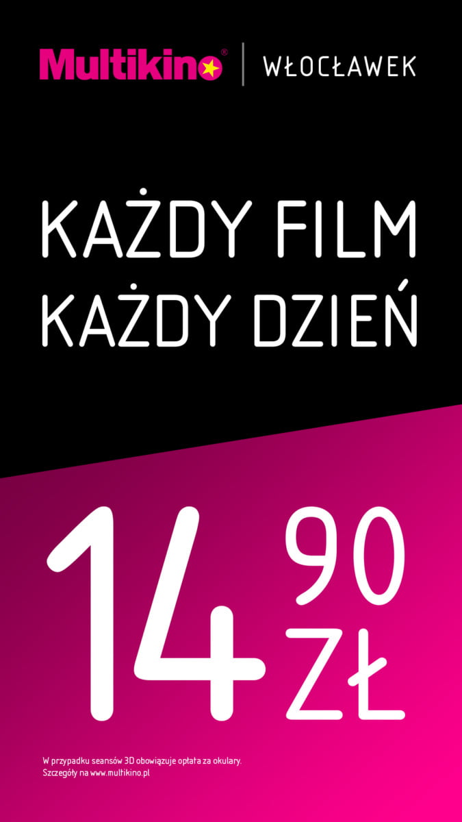 Nowy cennik obowiązuje przez cały tydzień. Oznacza to, że od poniedziałku do niedzieli bilety do Multikina Radom w Galerii Słonecznej mają tę samą, stałą cenę – czyli 14,90 zł. W przypadku seansów 3D wymagana jest dopłata za okulary.
