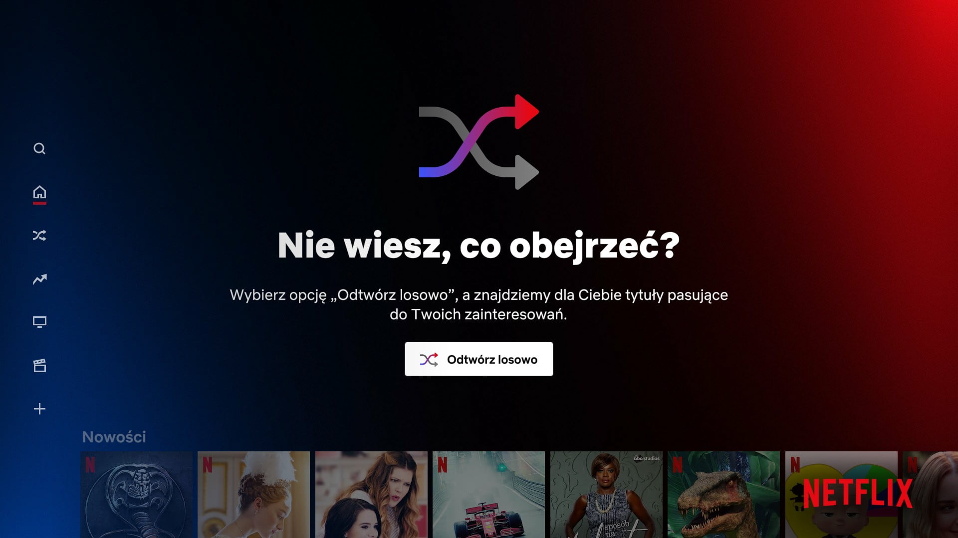 Przycisk “Odtwórz losowo” można znaleźć w paru miejscach na Netflix: