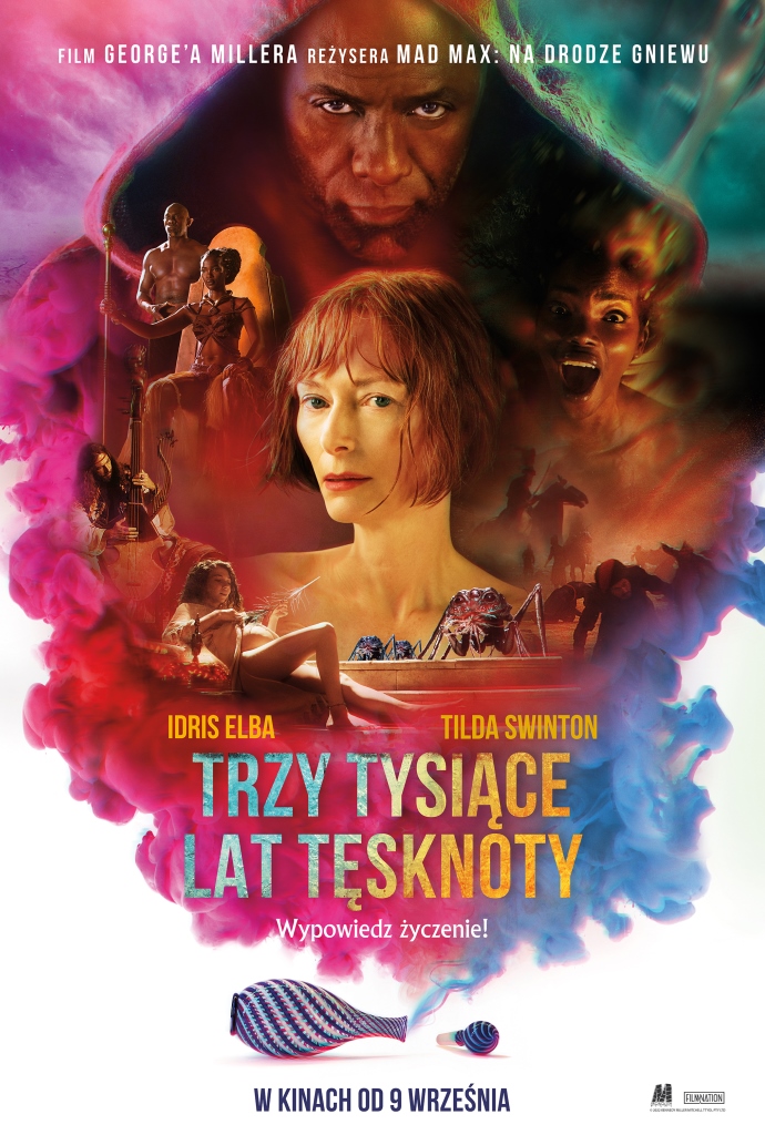 Druga propozycja to zrealizowana z ogromnym rozmachem, pełna fantastycznych wizji baśń dla dorosłych o wielkiej miłości silniejszej niż rozum i upływ czasu. W filmie „Trzy tysiące lat tęsknoty” dr Alithea Binnie jest osobą mocno stąpającą po ziemi. Jej zadowolenie z życia bierze się po części z faktu, że już dawno przestała uganiać się za mrzonkami w poszukiwaniu szczęścia. Nie ma wygórowanych wymagań wobec świata, do którego podchodzi z dużą dawką sceptycyzmu. W życiu kieruje się zaś zdrowym rozsądkiem, zamiast ulegać porywom uczuć. Mimo tego, a może właśnie dlatego, pewnego dnia w jej życiu pojawia się najprawdziwszy dżin, który w zamian za swą wolność, oferuje jej spełnienie trzech życzeń. Problem w tym, że Alithea zawodowo zajmuje się analizowaniem starożytnych podań i baśni i ma pełną świadomość, że takie igraszki z losem mogą się bardzo źle skończyć. Dżin jednak nie daje za wygraną. Aby zachęcić ją do wypowiedzenia życzenia opowiada jej niesłychane historie ze swojej przeszłości. W końcu Alithea decyduje się wypowiedzieć życzenie, które zaskoczy zarówno dżina jak i ją samą.