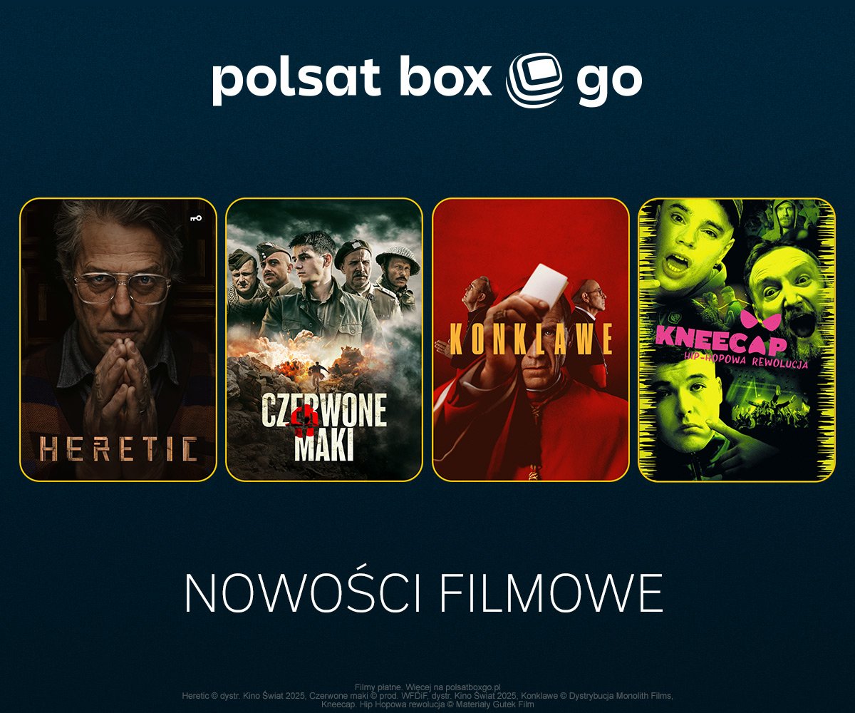 Polsat Box Go nie zwalnia tempa i wzbogaca filmową bibliotekę o najnowsze kinowe hity. W lutym wśród nowości znajdziemy m.in.: horror „Heretic” z hipnotyzująca rolą Hugh Granta, „Czerwone maki” – pierwszy polski film fabularny o zwycięskiej bitwie o Monte Cassino, „Konklawe” – fascynujący, nominowany aż w 7 kategoriach do tegorocznych Oscarów thriller, który przenosi widzów w samo serce Watykanu, oraz „Kneecap. Hip-hopowa rewolucja” – laureata nagrody publiczności festiwalu Sundance i przebój tegorocznego MFF Nowe Horyzonty.