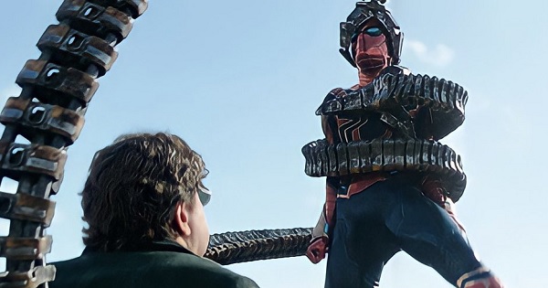 Wśród scen z filmu Spider-Man: Bez drogi do domu widzimy między innymi rozmowę Petera, Strange’a i Doc Ocka czy walkę na moście.