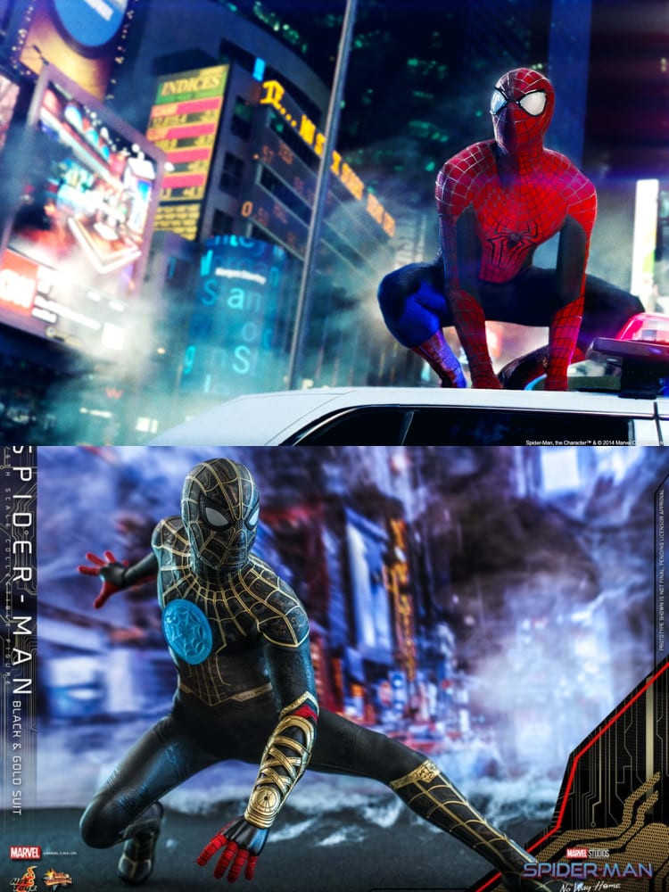 Chciałbym jeszcze zwrócić waszą uwagę na tło owych zdjęć. Możliwe, że naciągam, ale tło pierwszego zdjęcia pajęczaka, bardzo przypomina Nowy Jork z filmów Spider-Man w reżyserii Sama Raimiego. Drugie, trzecie i czwarte za to zdają się być umiejscowione w świecie filmów Niesamowity Spider-Man, a dokładniej podczas walki pajęczaka z Electro. Pamiętajcie jednak, że to tylko moje wymysły.