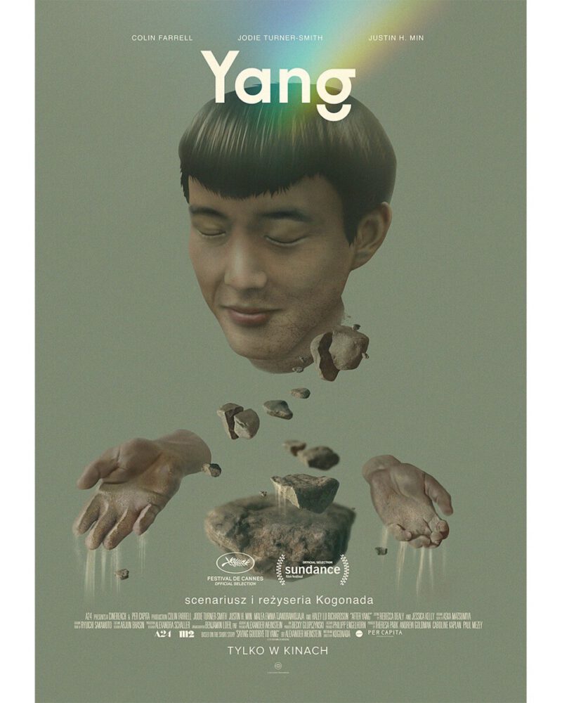 Surrealistyczny plakat filmu Yang z Colinem Farrellem