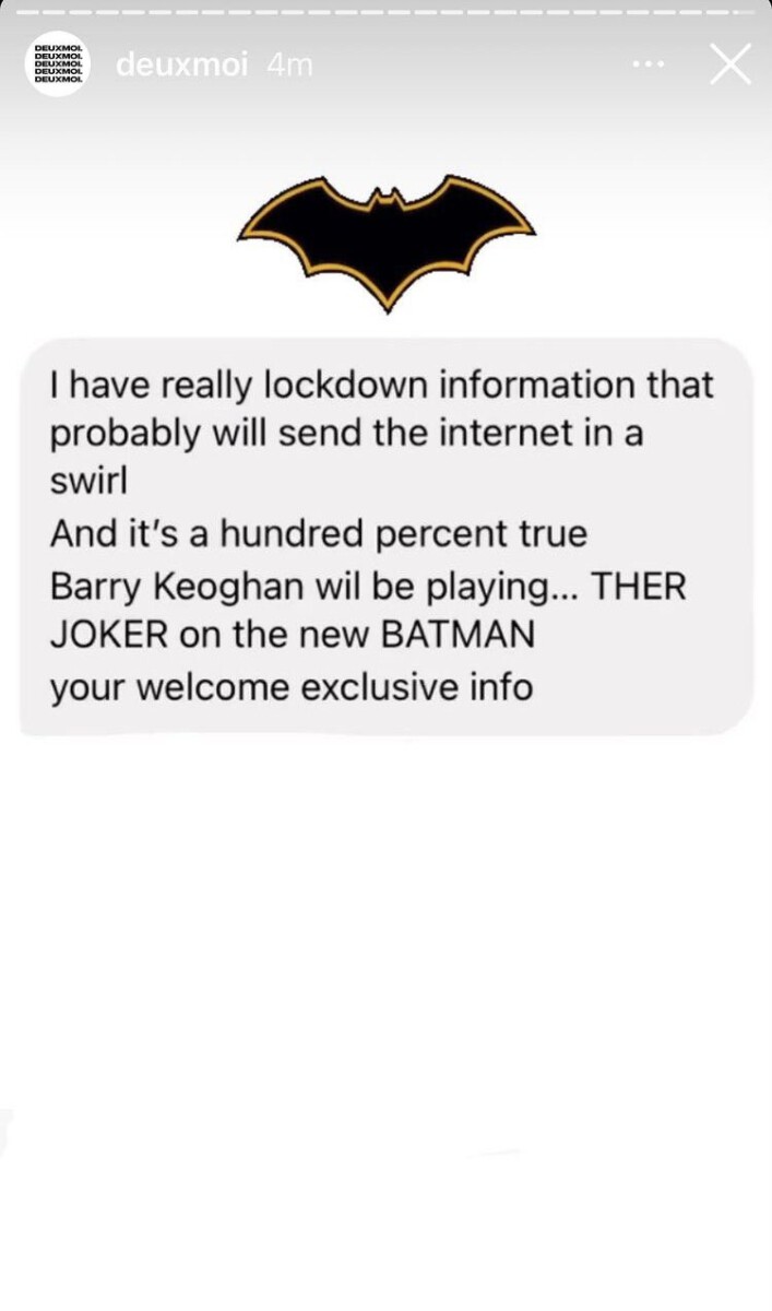 Myślę, że wielu z nas nie może się już doczekać filmu The Batman. Wszystkie materiały promocyjne, które dotychczas otrzymaliśmy, były zachwycające i na kilka dobrych dni oblegały cały internet. Jest jednak czas na oficjalne materiały i na ploteczki. Dzisiaj po sieci krąży zaskakująca informacja dotycząca roli Barry’ego Keoghana, który pewien czas temu dołączył do obsady filmu DC. Użytkownik Instagrama o nazwie Deuxmoi, niedawno wyjawił, że gwiazda filmu Eternals otrzymała rolę Jokera! Lepiej jednak patrzeć na tę informację z przymrużeniem oka, gdyż jest to plotka. Aczkolwiek dany leaker, wcześniej dzielił się informacjami, które okazywały się być prawdziwe. Wcześniej podejrzewało się danego aktora o otrzymanie roli Szalonego Kapelusznika, ale teraz nie wszyscy są tego tacy pewni. Cóż, premiera już w marcu, więc prawdopodobnie to wtedy otrzymamy odpowiedź.