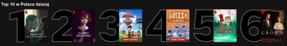 Oddzielnie rankingi filmów i seriali prezentują się następująco: