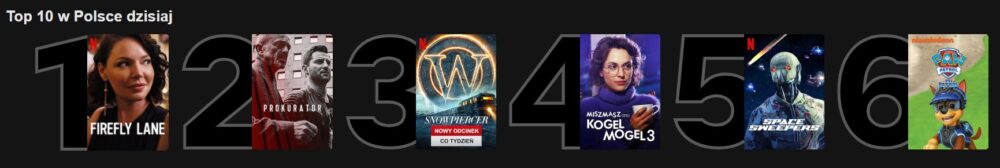 Kolejnego dnia na liście pierwszeństwo ma Firefly Lane, tuż przed Prokuratorem i Snowpiercerem. Trzeci Kogel Mogel zaś jak już spadł, to z pierwszej trójki.