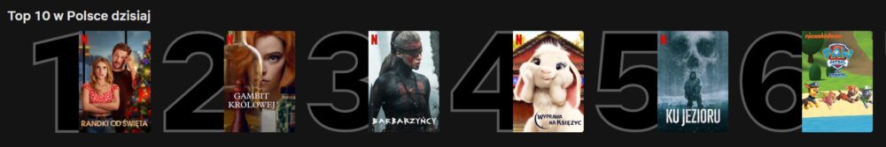 Niezbyt długo Gambit królowej cieszył się z przewodnictwa na liście. Wyprzedziła ich komedia romantyczna z Emmą Roberts. Na trzeciej pozycji strąceni Barbarzyńcy.