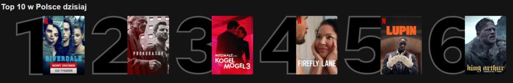Oddzielnie rankingi filmów i seriali prezentują się następująco: