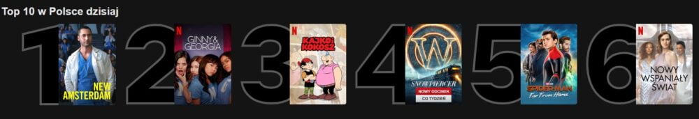 Oddzielnie rankingi filmów i seriali prezentują się następująco:
