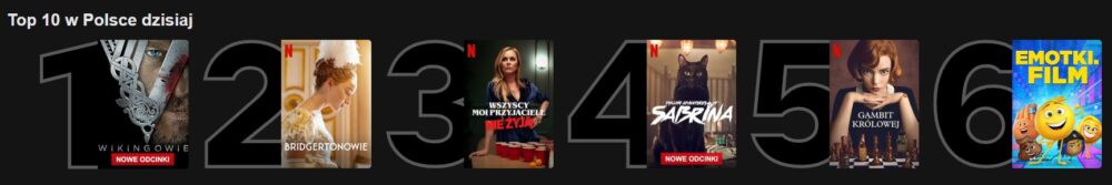 Wikingowie w dalszym ciągu trzymają się na pierwszej pozycji przed Bridgertonami, natomiast na trzecie miejsce wdrapał się hit końcówki ubiegłego roku – Wszyscy moi przyjaciele nie żyją.