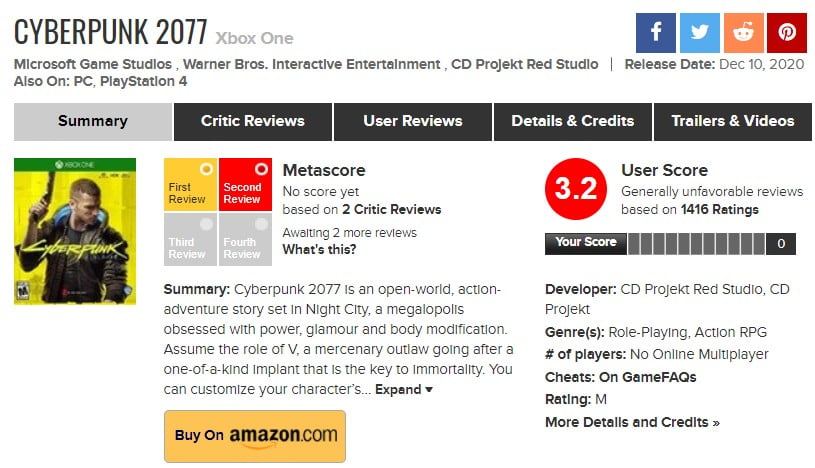 Choć na Steamie czy GOG-u opinie mają raczej tendencję wznoszącą, konsolowe recenzje zarówno na PS4, jak i Xbox One są zatrważające. Gracze tej pierwszej dają na Metacriticu 2.6/10, na tym drugim zaś – 3.2. Dla porównania, pecetowe średnia w tymże serwisie wynosi 6.6 – co nadal jest jeszcze rozczarowujące, ale nie aż tak. Póki co bowiem gra zdaje się kompletnie nie radzić sobie pod wieloma względami na konsolach poprzedniej generacji i komputerach, które nie mają lepszych podzespołów.