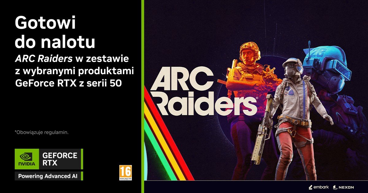 Ekstrakcyjna strzelanka ARC Raiders stawia na zespołową rozgrywkę i widowiskowe starcia. Jej premiera zaplanowana jest na 30 października. Wchodząc do świata gry można zwiększyć immersję, poprawić responsywność i przyspieszyć płynność rozgrywki dzięki zestawowi technik NVIDIA. DLSS 4 z funkcją Multi Frame Generation, współdziałająca z DLSS Super Resolution, zwielokrotnia płynność. NVIDIA Reflex redukuje opóźnienia systemowe, umożliwiając szybsze reakcje i bardziej responsywne sterowanie. Z kolei NVIDIA RTXGI wykorzystuje moc ray tracingu, by oświetlenie było bardziej realistyczne i dynamiczne. W ramach promocji Gotowi do nalotu przy zakupie u partnerów akcji karty graficznej GeForce RTX 5090, 5080, 5070 Ti, 5070 lub wyposażonego w nią komputera stacjonarnego albo laptopa, można otrzymać kopię gry ARC Raiders w wersji Deluxe Edition oraz bonusowe dodatki. Promocja potrwa do 4 listopada 2025 roku.