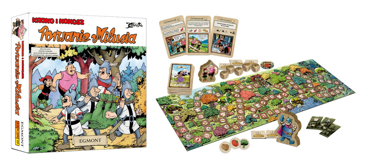 Wydawnictwo Egmont i Fundacja Kreska im. Janusza Christy dobrze sobie poczynają w kwestii wykorzystania tak kochanej przez wszystkich licencji, jaką jest Kajko i Kokosz. Mamy wznowienia komiksów w miękkiej oprawie, przystępnych cenowo i szeroko dostępnych dla wszystkich czytelników. Mamy przeznaczoną dla koneserów edycję zbiorczą w twardej oprawie, wzbogaconą o eseje, szkice, rysunki i kolekcjonerskie plansze. Mamy całkiem nowe opowieści tworzone przez kolejnych twórców, serial na Netfliksie, grę karcianą, a teraz także planszówkę Kajko i Kokosz – Porwanie Milusia. To właśnie jej przyjrzę się w niniejszej recenzji.
