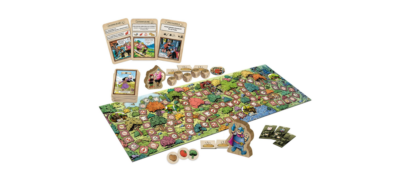 Piękna rozkładana plansza przywodzi na myśl świat stworzony przez Janusza Christę. Znajdziemy na niej drogę wyznaczoną przez gęsty las, a na niej chatkę Jagi, krainę Borostworów, Jomsborg i warownię Zbójcerzy. Podczas podróży gracze będą rozwijać trzy cechy: odwagę, spryt i siłę swoich postaci, rzucać kostkami by wyjść z cało z różnorakich wyzwań i opresji, kolekcjonować warzywa i strawę, a także korzystać z rękawicy siły pozwalającej nieco zmanipulować wynik rzutu kostką.