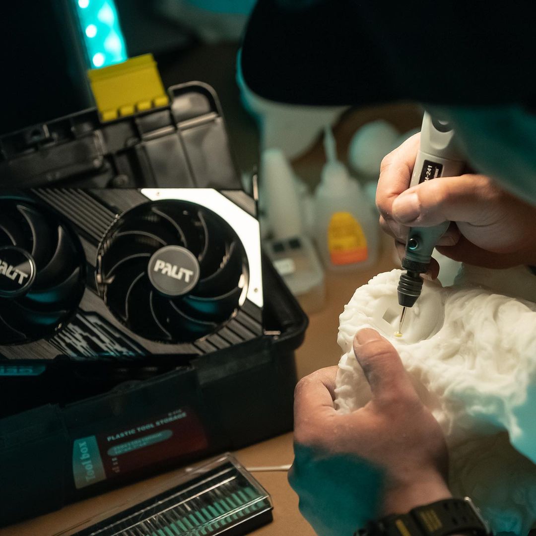 Ta ogromna jednostka została stworzona specjalnie na targi Computex 2023. Kreacja zdecydowanie wychodzi poza ramy standardowego procesu modyfikacji. Dzięki programowi Maker twórcy stworzyli i wydrukowali stabilną podstawę, na której mogli następnie umieścić swoją wykonaną ręcznie figurkę Obcego. Wszystko w otoczeniu wypełnionym detalami. Podstawą była tutaj karta Palit GeForce RTX 4080 GamingPro. Proces montażu i wymiany elementów jest niezwykle prosty, ponieważ odbywa się za pomocą 4 śrubek.