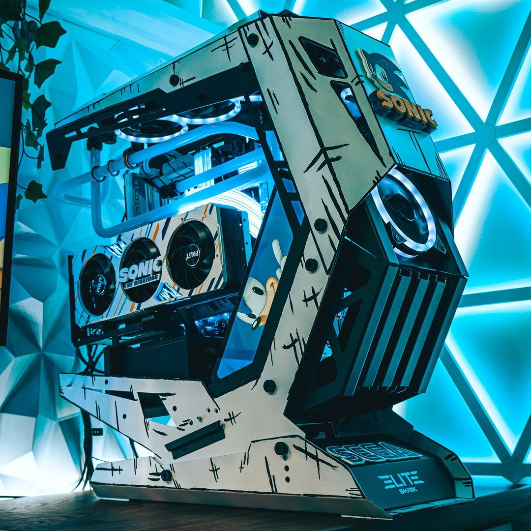 W tym przypadku mamy komputer, który największe modyfikacje przeszedł w zakresie obudowy i autorskiego układu chłodzenia wodnego, to jednak karta graficzna dzięki programowi Maker jest idealnie dopasowana z resztą podzespołów. Zgranie stylistyczne i kolorystyczne sprawia, że całość jest spójna, a Sonic na takim sprzęcie przebiegnie nie jeden ultramaraton.