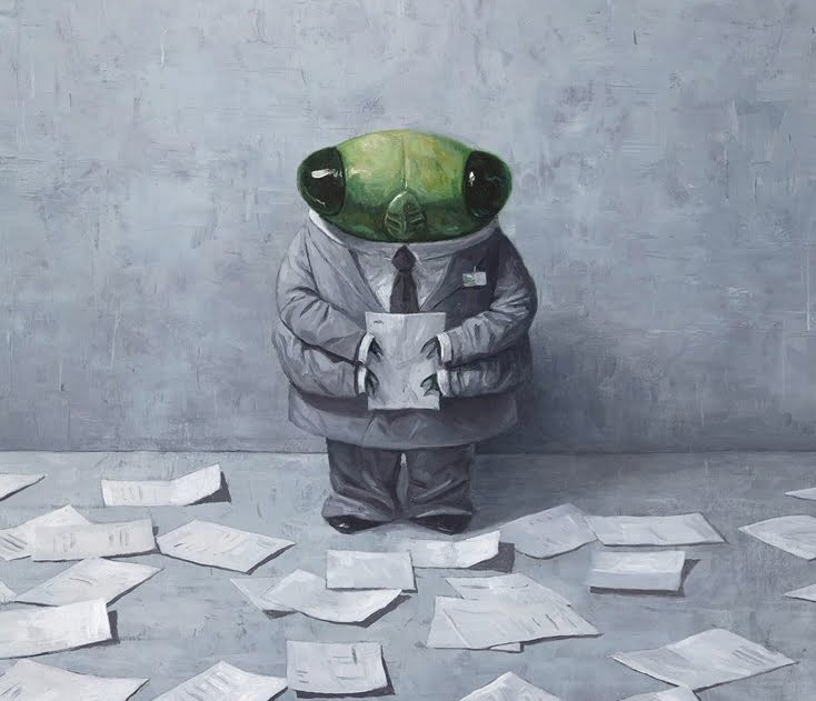 Najnowsza książka Shauna Tana to historia cykady, pracownika biurowego, którego nikt nie ceni. Cykada pracuje w biurowcu, dzień w dzień sumiennie wykonując nudne i powtarzalne czynności.