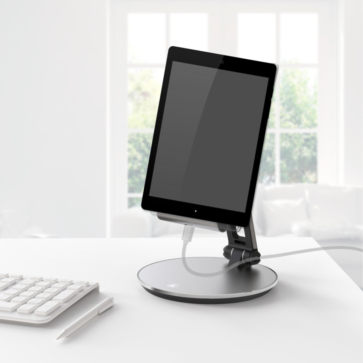 Obsługa stojaka należy do najprostszych z możliwych, gdyż wystarczy jedynie umieścić tablet w uchwycie niczym książkę. Najważniejszą funkcjonalnością jest możliwość dowolnej regulacji kąta na dwóch przegubach ramienia. W ten prosty sposób można indywidualnie dostosowywać kąt widzenia, np. płasko do przeglądania sieci i pisania oraz pod kątem do oglądania zdjęć, filmów, a także innych treści multimedialnych. Tablet da się też ustawić w orientacji pionowej lub poziomej, zależnie od własnych preferencji.