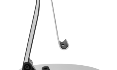 Stojak został wykonany z aluminium i utrzymany w stonowanej srebrno-czarnej kolorystyce, pasującej designersko do często spotykanego biurowego otoczenia. Ma wymiary 17,5 x 17,5 x 20 cm, waży 680 g, a wytrzyma maksymalne obciążenie o wartości 900 g. Samo ramię na tablet umieszczono na okrągłej podstawce.
