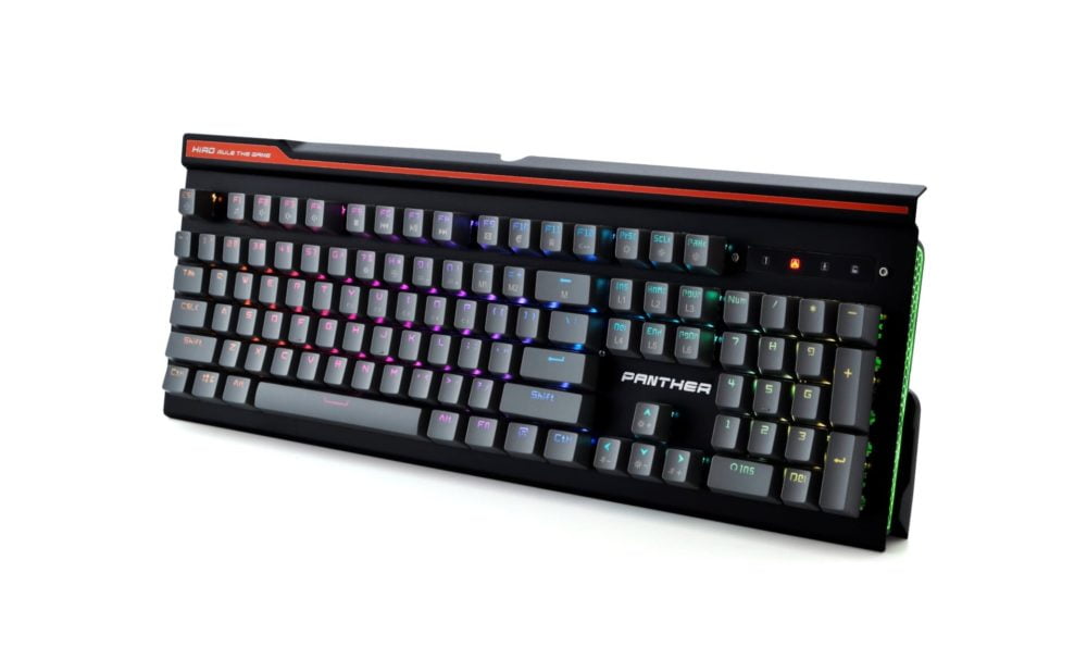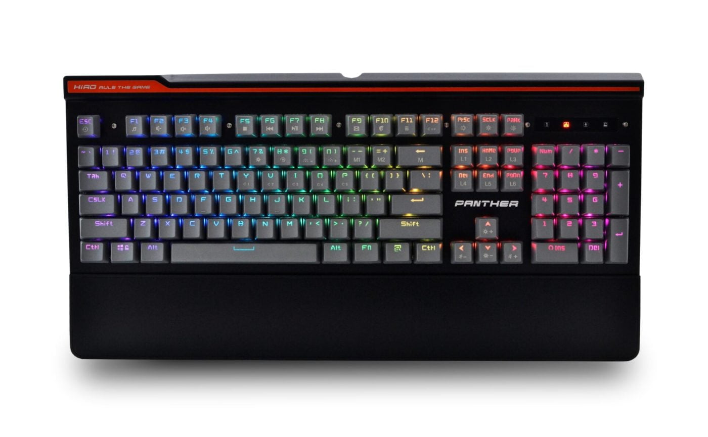 PANTHER usytuowana jest najwyżej wśród nowych drapieżników HIRO®. Potrafi zaskoczyć wyjątkową jakością użytkowania ale również efektownym i trwałym wykonaniem. Wyposażona w niezrównane pod względem szybkości przełączniki optyczne oraz bardzo wygodną, składaną podkładkę na nadgarstki plasuje się w pierwszej lidze klawiatur dla zapalonych graczy. Unikalnego charakteru klawiaturze można nadać wykorzystując wielokolorowe podświetlenie w pełnej gamie RGB oraz programując własny tryb podświetlenia paneli bocznych.