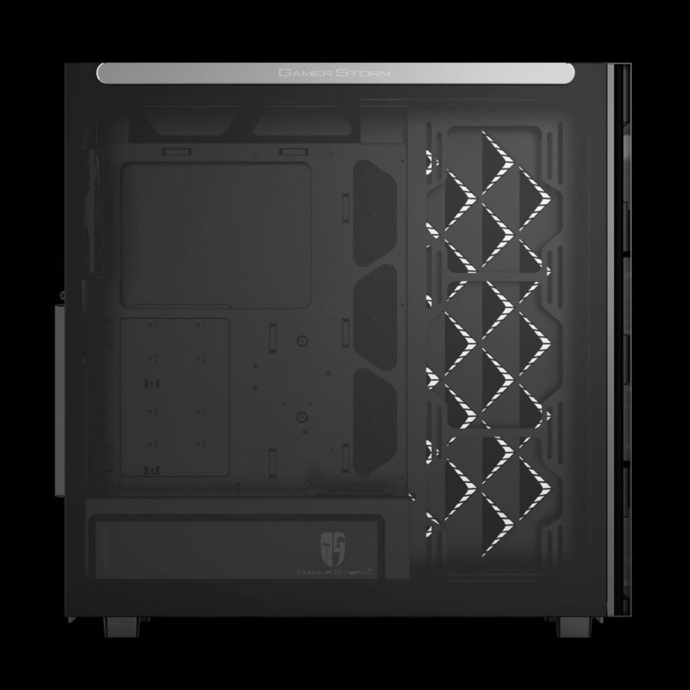 Obudowy Deepcool Macube 550 umożliwiają szeroki wybór stosowanych układów chłodzenia. Z przodu można zainstalować nawet do czterech wentylatorów 120 mm lub potężny radiator 360 mm. Na bocznym panelu (co jest nieco nietypową lokalizacją) przewidziano miejsce na taki sam radiator lub trzy wentylatory.