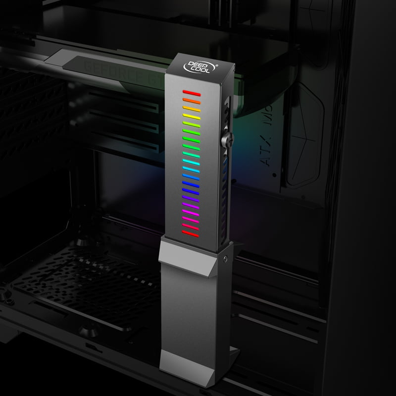 Deepcool wprowadza na rynek zupełnie nowy uchwyt dla karty graficznej – GH-01 A-RGB. Jak łatwo się domyślić widząc tylko nazwę urządzenia, ma ono nie tylko zadanie użytkowe, ale też cel wyraźnie estetyczny. Urządzenie jest bowiem wyposażone w podświetlenie LED RGB.