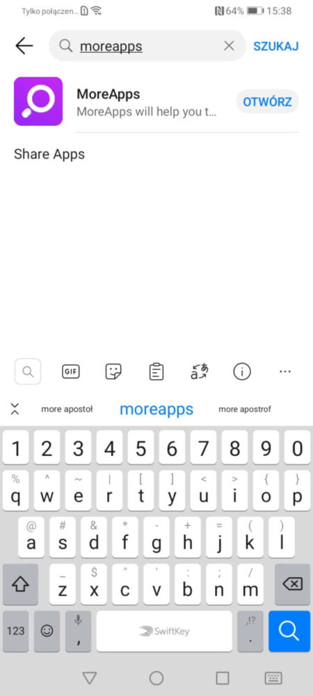 W AppGallery wyszukujemy MoreApps, pobieramy ją na nasz smartfon, a następnie instalujemy.