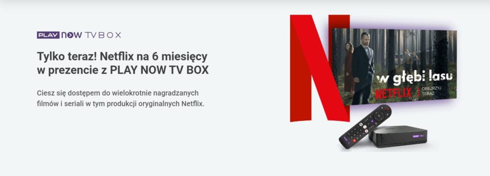 PLAY NOW TV BOX to propozycja dla wszystkich, którzy cenią sobie najwyższą jakość oglądanych treści, szeroki wybór najlepszych seriali i filmów dostępnych w dowolnym momencie oraz wysoki komfort użytkowania. Od teraz, każdy, kto zdecyduje się na specjalną ofertę telewizyjną PLAY NOW TV z pakietem News za 20 zł miesięcznie, otrzyma półroczną subskrypcję Netflix w prezencie i tym samym dostęp do znanych na całym świecie tytułów takich jak „Wiedźmin”, „Dom z Papieru” czy „Stranger Things”. Do bogatej biblioteki serwisu dołączył właśnie najnowszy polski serial oryginalny Netflix: „W głębi lasu”, stworzony na podstawie powieści Harlana Cobena.