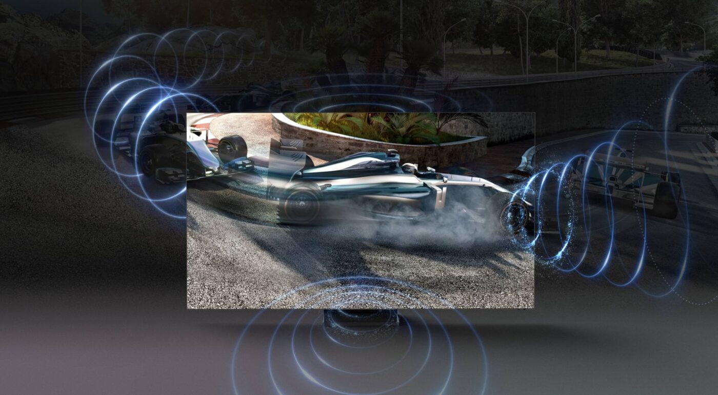 W telewizorach Samsung QLED 4K – Q80T, Q90T oraz Q95T – wykorzystano cztery zestawy głośników, które zostały rozmieszczone w różnych miejscach w tylnej obudowie. Z kolei w modelach QLED 8K – Q800T i Q950T – zastosowano aż sześć zestawów głośników, a technologia zyskała „plusa” w nazwie – znajdziemy tu bowiem Dźwięk Podążający za Obiektem (OTS+).