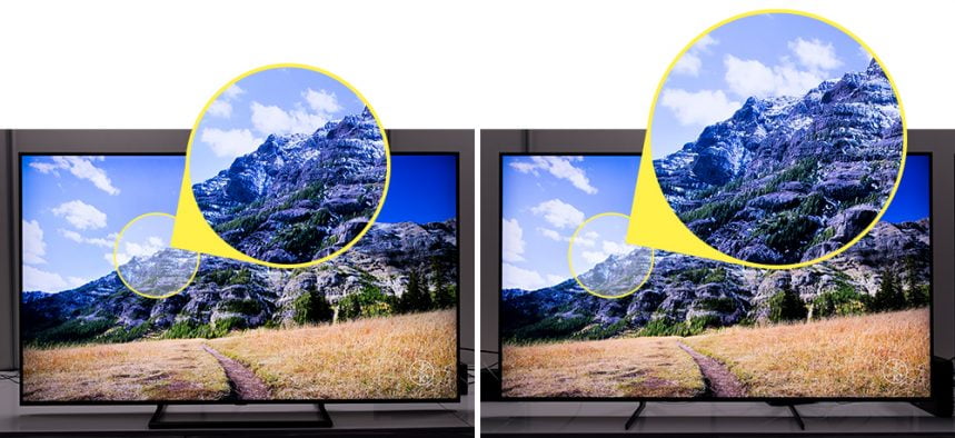 Wideo HD (po lewej) i wideo zmienione na rozdzielczość 8K (po prawej).