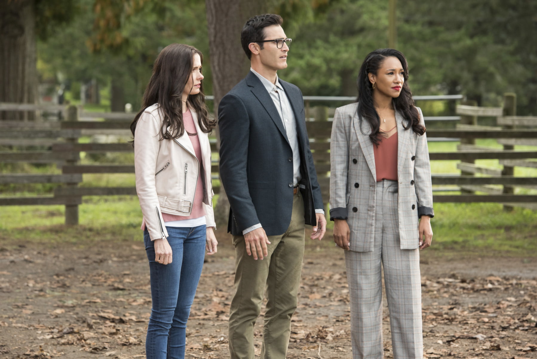 Batwoman — „Crisis on Infinite Earths: Part Two” — Image Number: BWN108a_0031.jpg — Pictured (L-R): Bitsie Tulloch as Lois Lane, Tyler Hoechlin as Clark Kent/Superman and Candice Patton as Iris West-Allen — Photo: Dean Buscher/The CW — © 2019 The CW Network, LLC. All Rights Reserved.