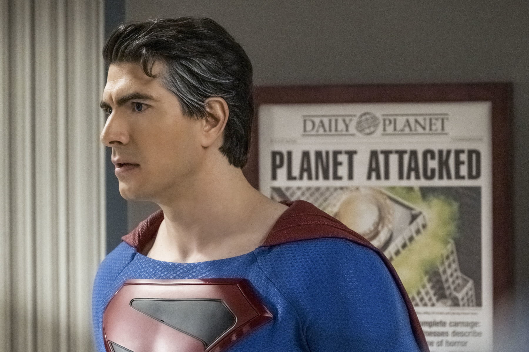 Batwoman — „Crisis on Infinite Earths: Part Two” — Image Number: BWN108d_0045.jpg — Pictured: Brandon Routh as Superman — Photo: Katie Yu/The CW — © 2019 The CW Network, LLC. All Rights Reserved.
