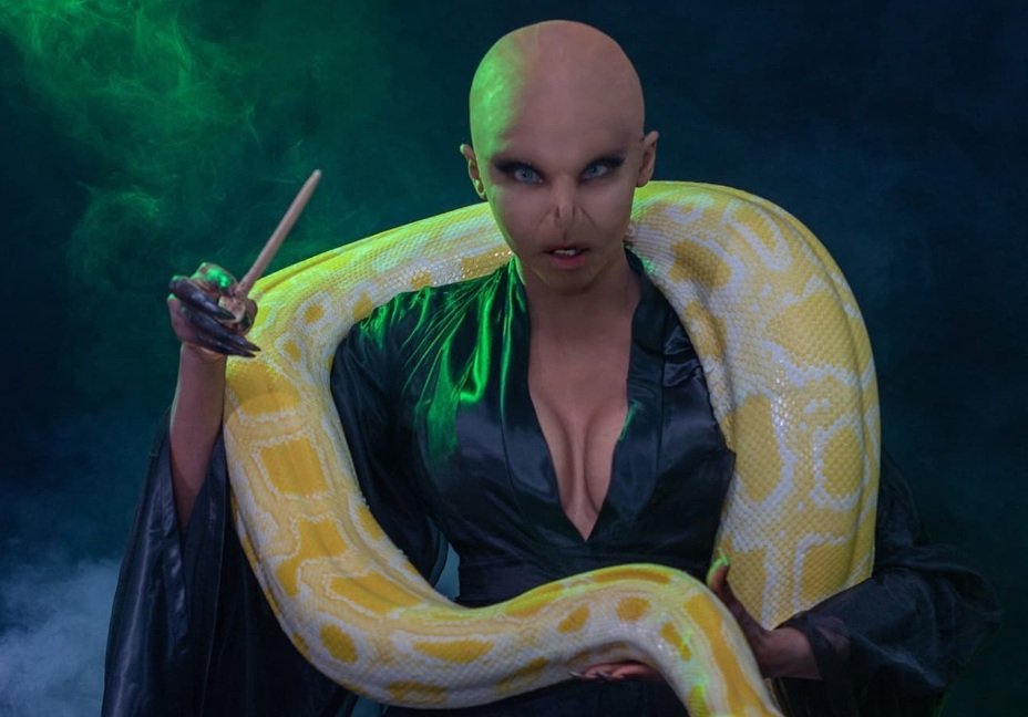 Jak może wyglądać kobieca wersja Voldemorta? Tak m.in. w ramach halloweenowego cosplayu prezentowała się jako Lady Voldemort znana z serii The Kissing Booth aktorka Joey King.