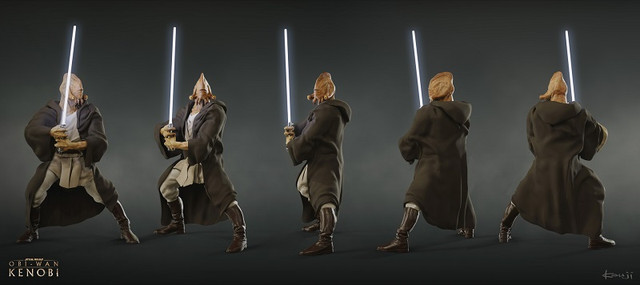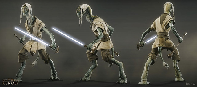 Artysta koncepcyjny Kouji Tajima ukazał dwa szkice rycerzy Jedi. Pierwszym z nich jest Pablo-Jill, którego nie widzieliśmy od czasów bitwy o Geonosis w Ataku klonów. Dotąd raczej zakładano, że znalazł się wśród poległych, ewentualnie na przykład zgładził go później Anakin Skywalker. Tak czy inaczej najwyraźniej rozważano jego przywrócenie, ale z tego zrezygnowano, bo w Obi-Wan Kenobi go nie widzieliśmy. Następnie jest jeszcze Tera Sinube, znany dobrze widzom Clone Wars. W jego przypadku sprawa była jasna – pojawił się ostatecznie w upiornej zbiorowej krypcie Jedi, jaką zgotowali Palpatine i Vader zgładzonym wrogom.