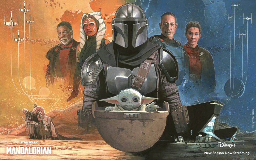 Po Jasnej stronie widzimy Greefa Kargę (Carl Weathers) i Ahsokę Tano (Rosario Dawson). Po „ciemnej” stronie są Moff Gideon (Giancarlo Esposito) i Morgan Elsbeth (Diana Lee Inosanto). W samym środku grafiki znajduję się Din Djarin (Pedro Pascal) i Grogu. Fani na pewno zauważają brak Boba Fetty, jednakże plakat został pewnie stworzony przed odcinkami z nim.