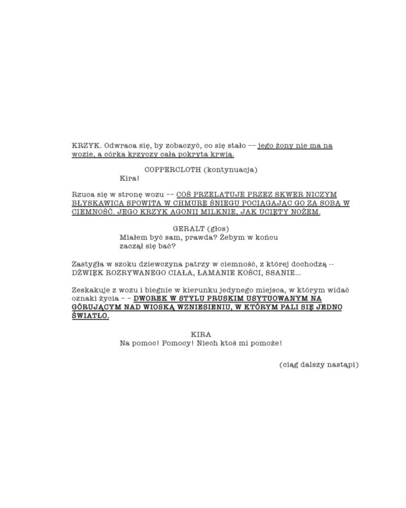 Oficjalny profil Wiedźmina opublikował ciekawe strony scenariusza serialu. Z tego co możemy tam przeczytać, odcinek rozpocznie się od ataku potwora.